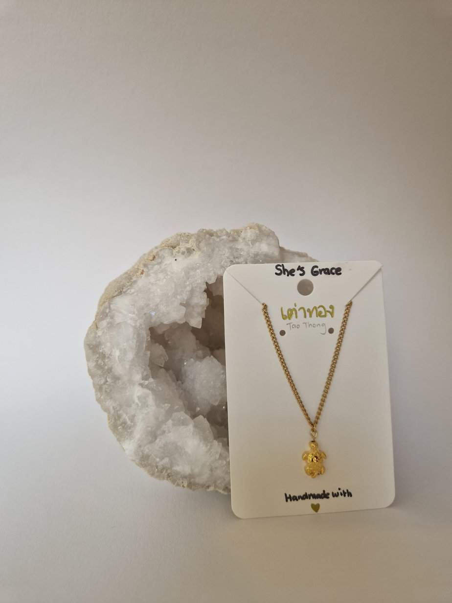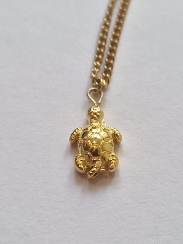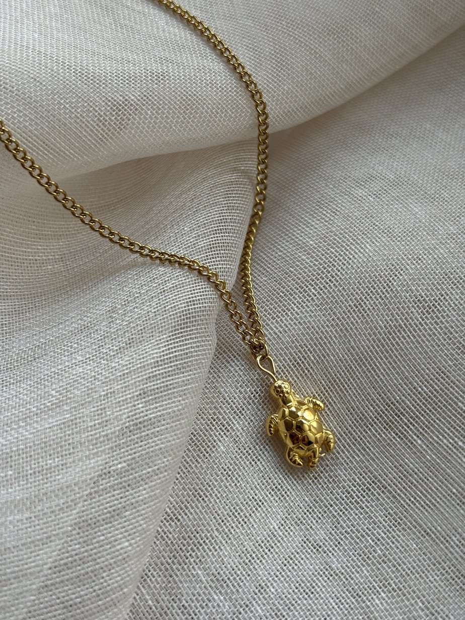 Mooie ketting met gouden schildpad bedel. Het schildpad bedeltje is gemaakt van DQ (designer quality) materiaal en is 24k gold plated. De rest van de ketting is volledig van roestvrijstaal.